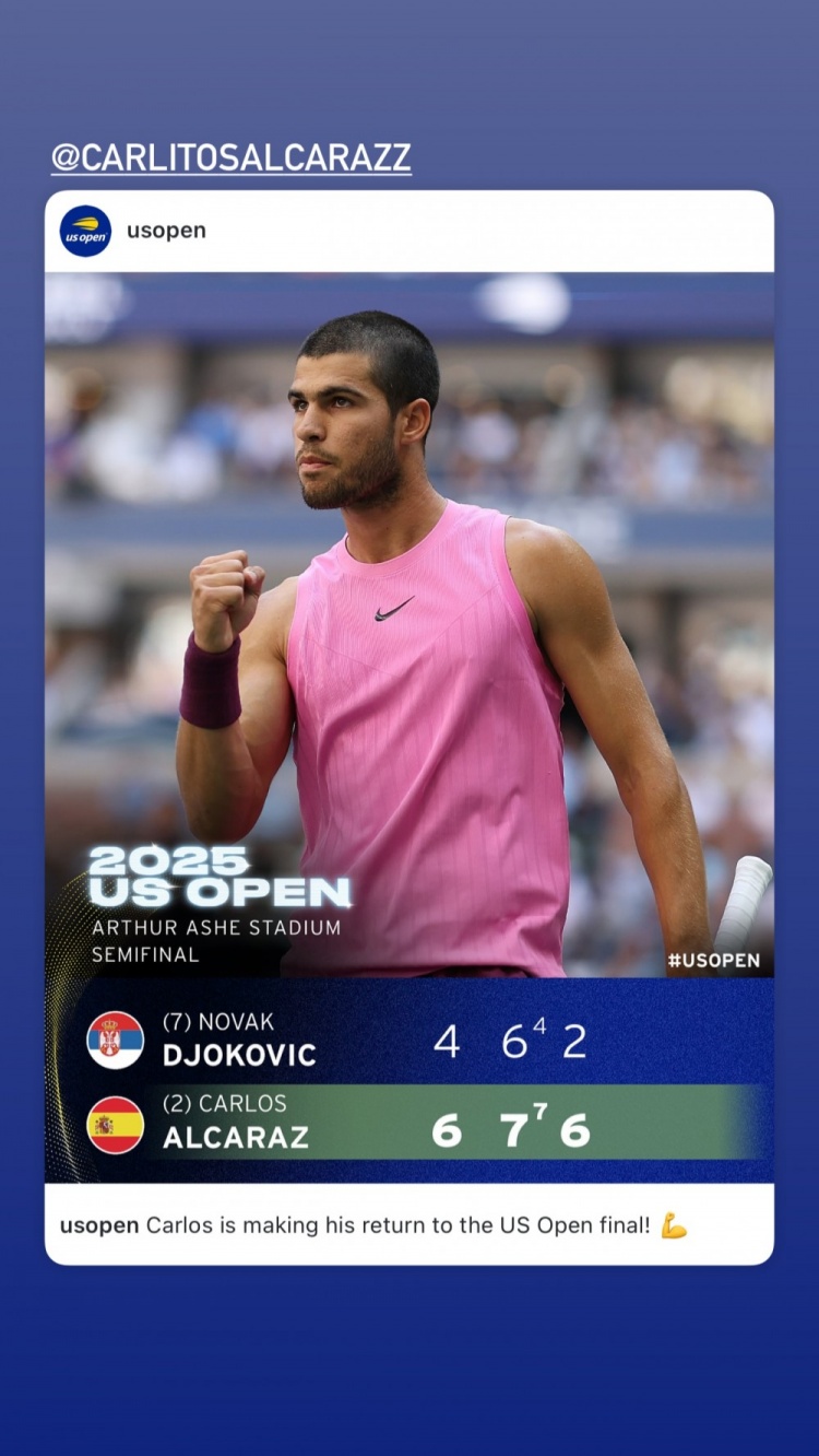 9月6日讯 今天,勇士球星巴特勒更新社媒,转发了西班牙球手阿尔卡拉斯在美网3-0击败德约科维奇的战报。