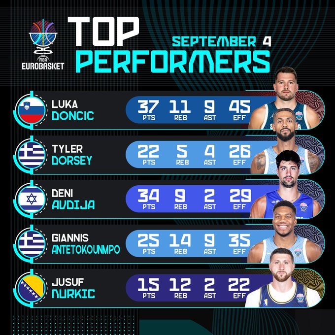 开云体育下载-欧锦赛官推晒昨日球员高光表现:东契奇37分11板9助 阿夫迪亚34+9