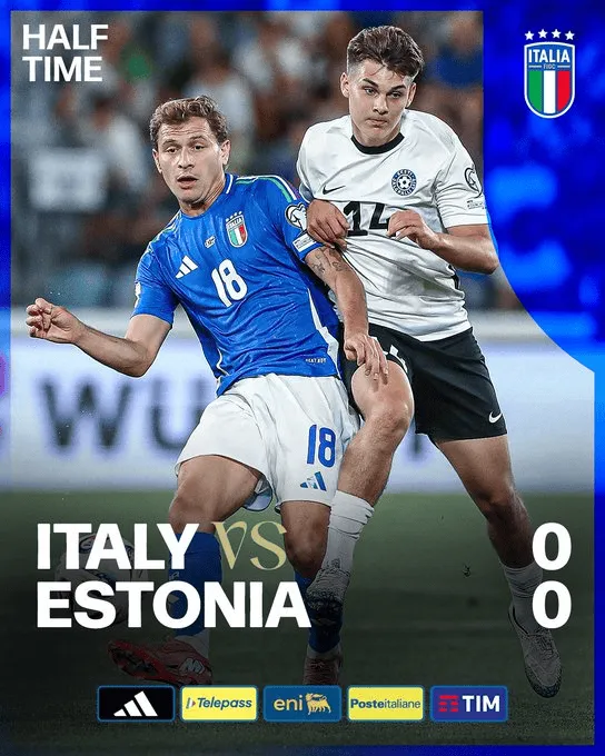 虎扑09月05日讯 世界杯欧洲区预选赛,意大利半场0-0爱沙尼亚。