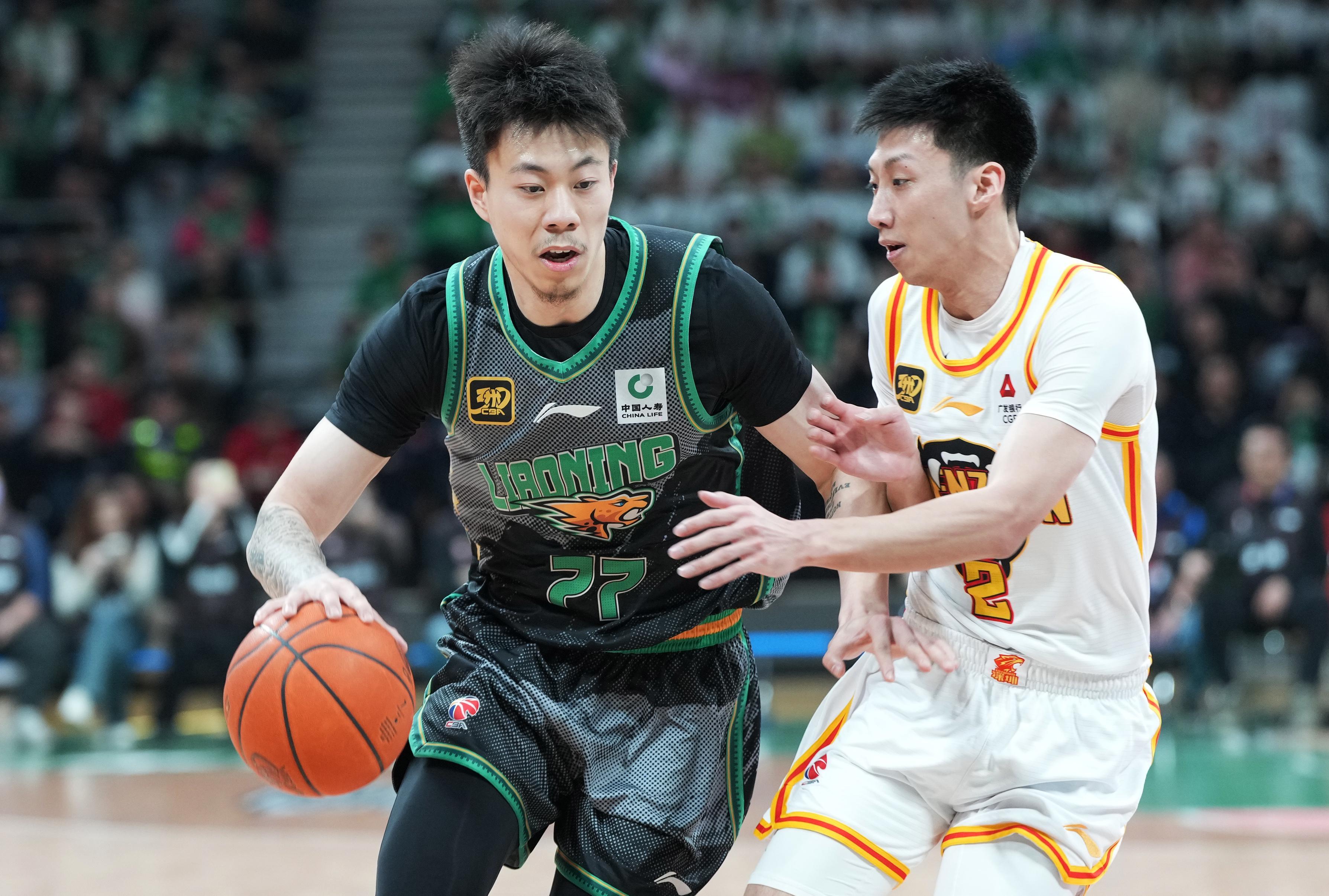 3月19日,辽宁队球员张镇麟(左)在2024-2025赛季CBA常规赛第42轮比赛中。新华社记者 李钢 摄