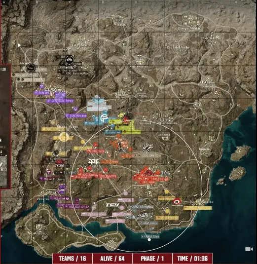 阶段6,SUN被多队枪线集火淘汰。