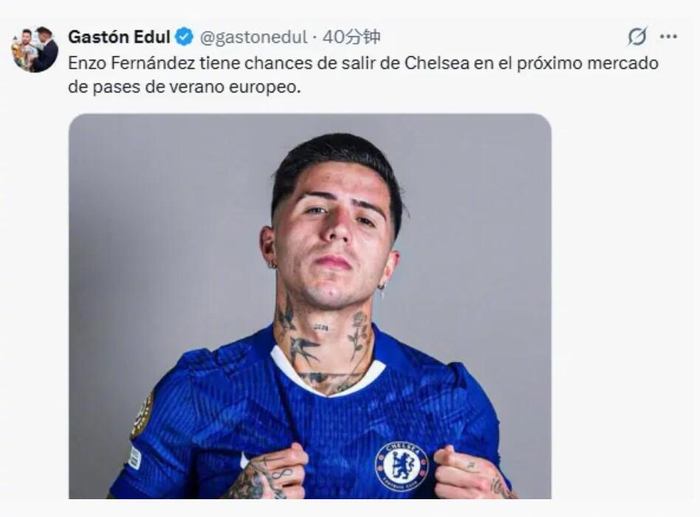 阿根廷国家队跟队记者,TyC著名记者Gastón Edul的最新报道,阿根廷中场恩佐-费尔南德斯有机会在下一个欧洲夏季转会窗口离开切尔西。